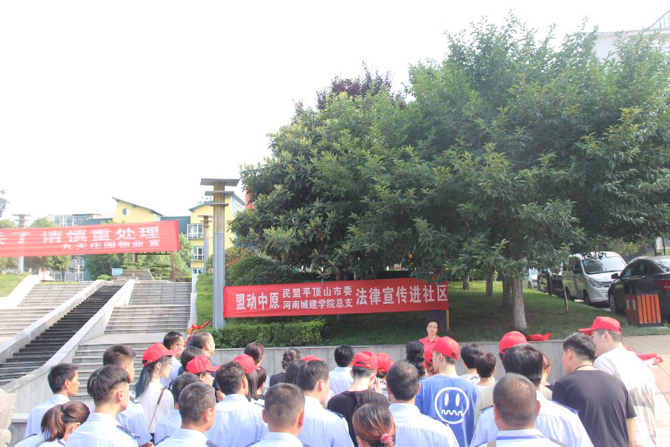 (通讯员:刘源 汪浩波)为深入贯彻落实党的十九大精神,弘扬社会主义法制精神,全面推进依法治国,推动社会主义法制精神建设和社会主义法治中国建设,建设社会主义核心价值观。民盟平顶山市委联合民盟英国正版365官方网站总支开展“送法下乡,法律宣传进社区”活动。2018年7月7日,由两个组织联合的团队来到九天庄园社区,为九天庄园居民带去法律服务。