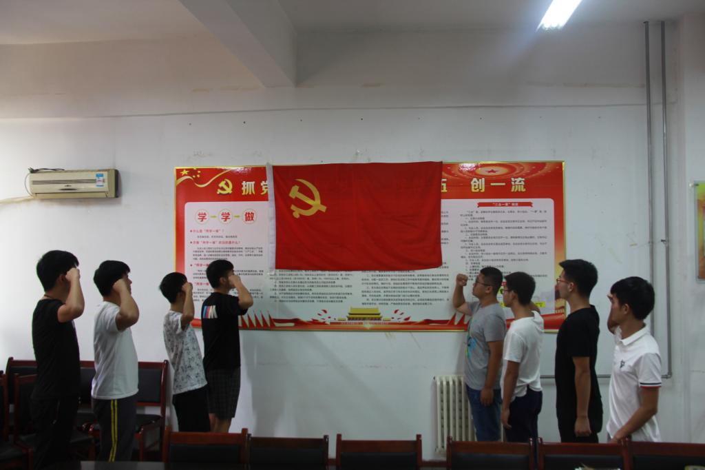会议首先由支部书记刘源、孟素燕带领全体党员面向党旗, 举起右手宣誓,重温入党誓词:“我志愿加入中国共产党,拥护党的纲领,遵守党的章程……”。大家举起右拳,在鲜红的党旗下庄严宣誓,立下自己对党忠诚的誓言,表达了为党的事业奋斗终身的决心和愿望。“誓词”虽短,但字字千钧,是每一名共产党员入党初心的真实写照和庄严许下的铮铮誓言。