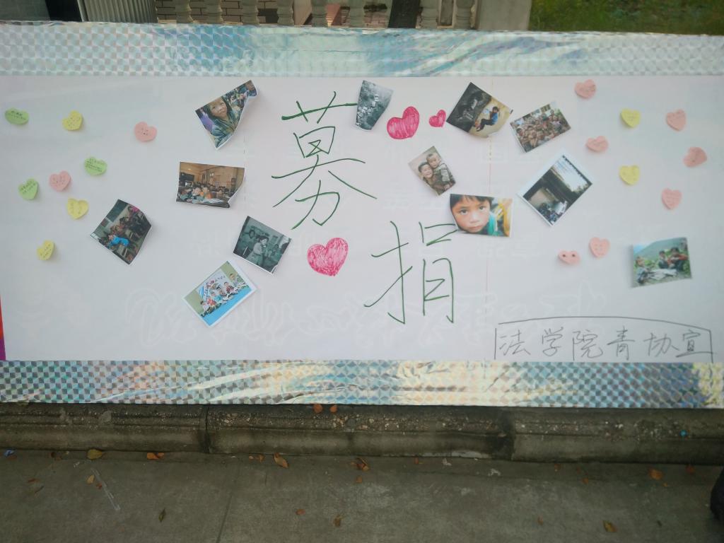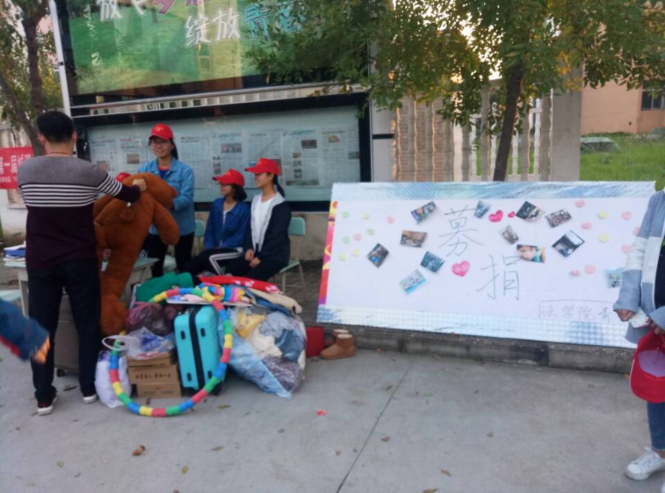 活动伊始,青年志愿者在文院餐厅对面进行设点,并展出板报,使大家对募捐具有一个全面的认知。在宣传过后,有不少同学纷纷捐献出自己不在穿着的衣物以及一些文具用品,此外,本活动还设有抽奖环节,凡是进行义捐的同学均可进行一次抽奖,都可获得纪念品,并在募捐的展板上留下自己的姓名以及想说的话。此次募捐活动持续一天,收到很多捐献的物品,募捐所得会于近日送往校青协一同捐献到需要的地方。