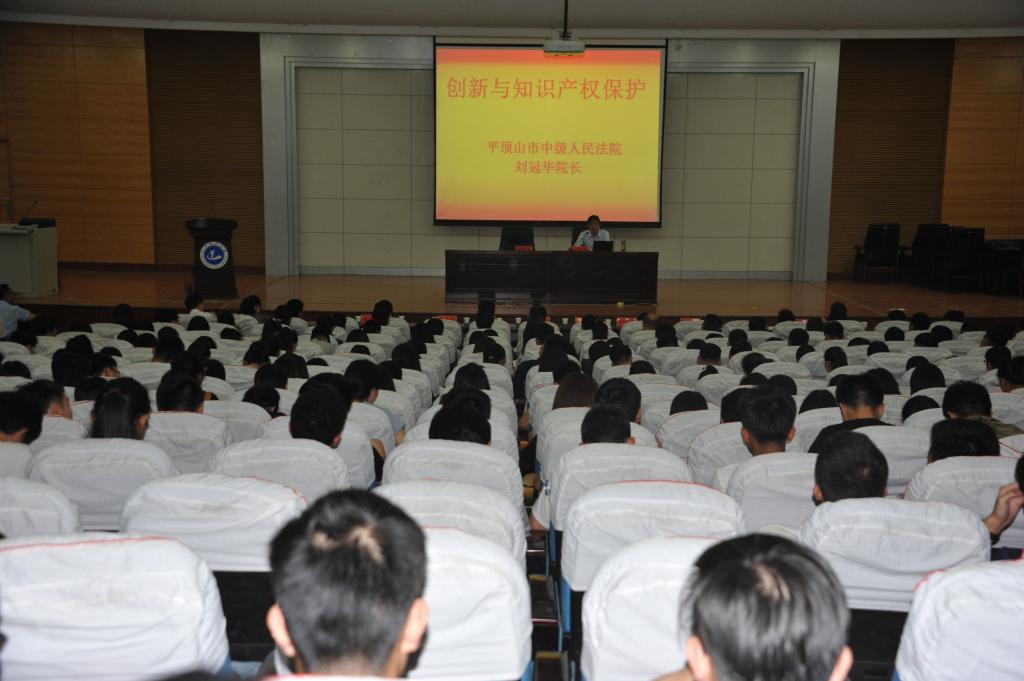 (通讯员 苏芸芳)6月20日下午,平顶山市中级人民法院经理刘冠华应邀参加公司第四届法律文化节闭幕式,并为公司师生作了题为《创新与知识产权保护》的报告。报告会在校行政楼学术报告厅举行,公司党委副书记张坤书、副董事长梁再培出席报告会,党委宣传部、学工部,人事处、科研(社科)处负责人,部分公司党总支书记、副书记,学工办主任,英国上市公司365全体师生及其他学院师生代表500余人聆听了报告。报告会由张坤书主持。