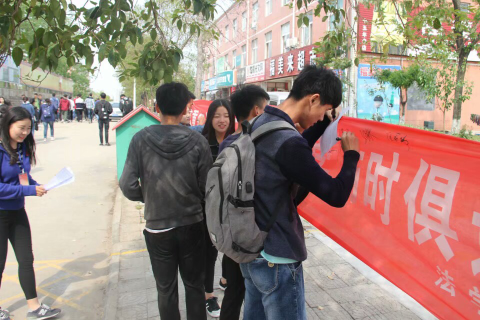 在这两个宣传点,参与本次活动的老师向过往的同学耐心的讲解法律知识,提供相关法律、法规咨询,详细解答同学们提出的法律问题,场面十分热闹。与此同时,同学们相继展开了普法横幅签字活动和分发法律知识宣传手册,过往的师生积极参与其中。此次活动发放宣传资料2000余份,接受咨询百余次。