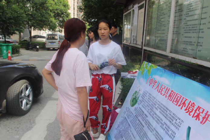 环保税法的制定是为了保护和改善环境,减少污染物的排放,推进生态文明建设。而为了使更多人了解环保税法的相关法律,增强关于环保方面的意识。在7月6日上午,由法学院志愿者前往湖光花园小区进行宣传普及活动。