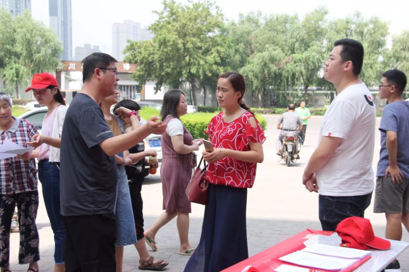 活动现场,志愿者们设立环保政策法律咨询服务台,到现场发放环保政策法律知识宣传手册、环境安全和生态保护宣传页等系列宣传资料。这次活动分为两队,一队志愿者们热情地接待前来咨询法律知识的社会群众,积极为群众解答关于生态环境保护、污染防治等方面的政策法律知识,另一队向群众发放宣传页,让他们了解此次活动的目的和意义。