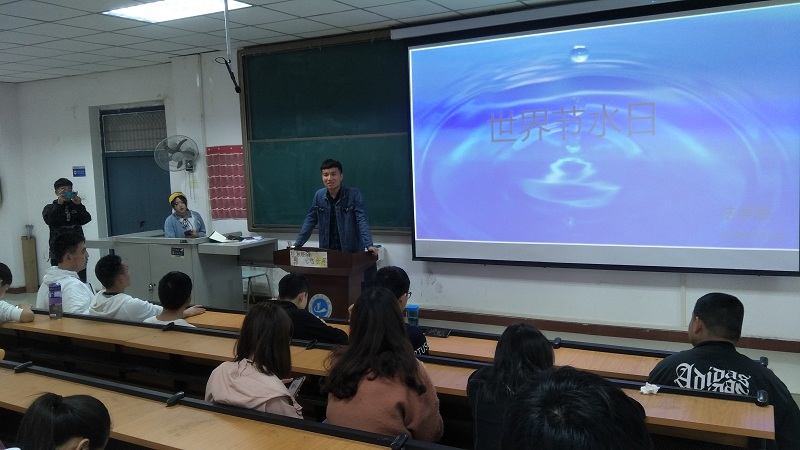 活动组织者利用投影仪将本次活动的主题展现给大家,大屏幕上制作精美的PPT吸引了同学们的目光,也使同学们对本次活动产生了强烈的好奇心。主持人就本次活动的主题进行阐述,把当下水资源紧缺和人类活动对水资源的无度使用和污染一一向同学们进行揭示,接着通过放映视频的方式进一步让同学们体会目前地球面临的水资源短缺的严峻形势,同学们深感震撼,场下气氛一片肃穆。活动最后,主持人通过抢答的方式将一些有关节水的小知识传递给同学们,同学们纷纷抢答,现场气氛十分热烈,在同学们的欢声笑语中,活动落下帷幕。