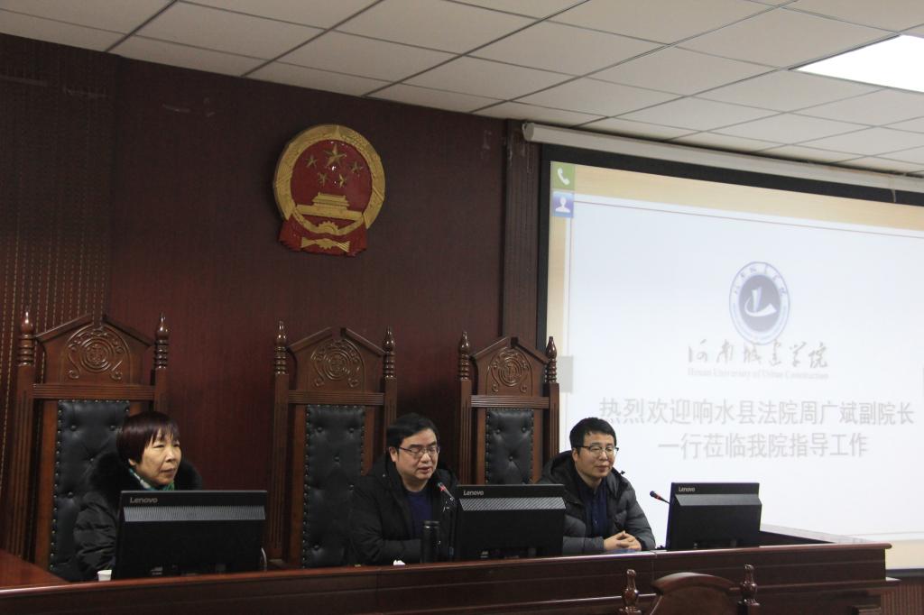 (通讯员 胡小光)2019年1月4日,江苏省响水县法院周广斌副经理一行3人,莅临公司模拟法庭就有关响水县法院基本情况、招聘安排向同学们进行现场解惑答疑。会议由王艳芳经理主持,总支副书记张强以及辅导员孟素燕、胡小光老师以及2019届毕业生参会。