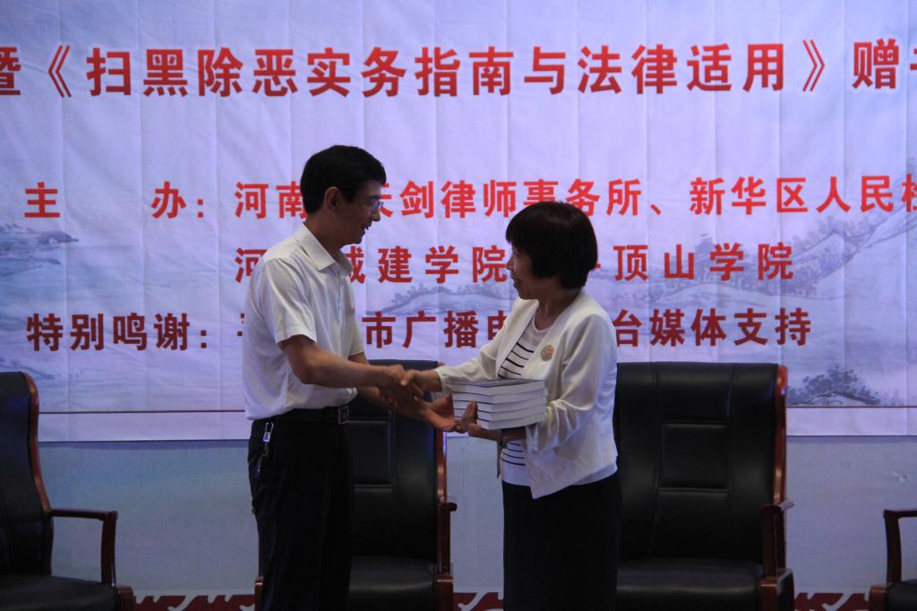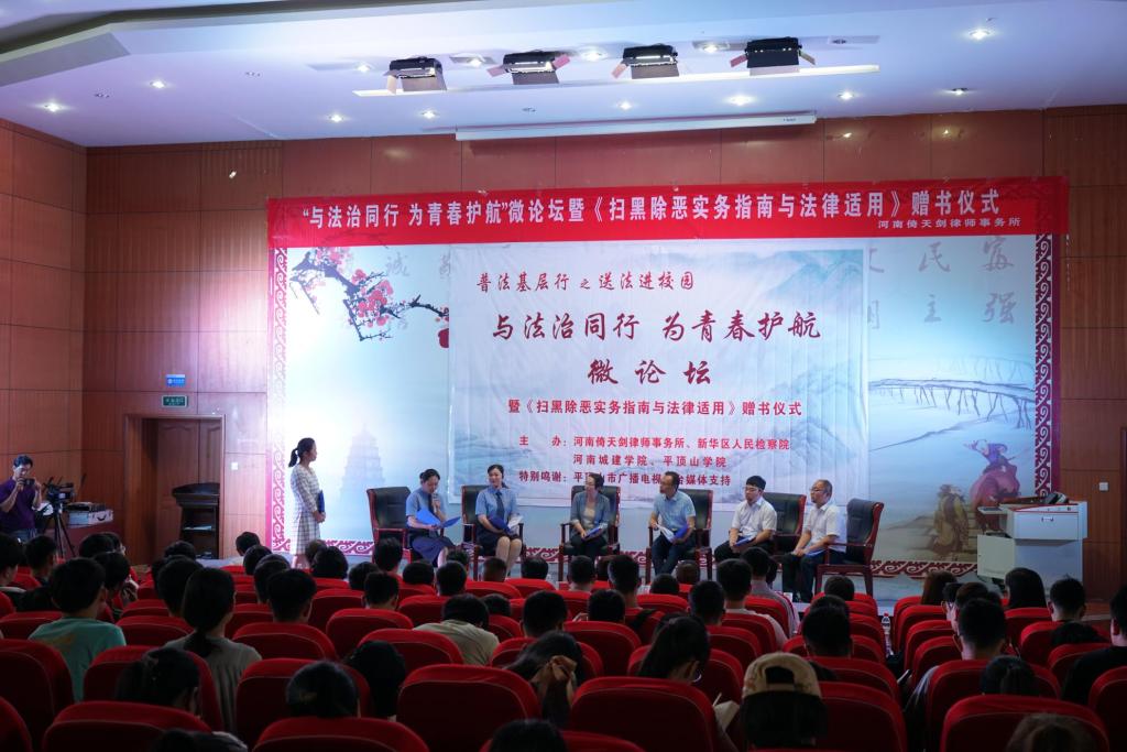 论坛首先播放了由英国正版365官方网站、新华区人民检察院、倚天剑律师事务所、平顶山学院联合拍摄的校园贷案例视频,然后嘉宾们对校园贷典型案件进行了深入分析,启发同学们认清校园贷的危害,从不良校园贷的种类和特征揭示校园贷的真面目,告诫同学们要认清“校园贷”的本质,杜绝校园贷。其次在论坛现场设立答疑环节,根据同学们提出的问题,在场的检察官、高校教师以及律师嘉宾都做出详细而又专业的解答,解决了同学们的疑惑并提出了专业建议。随后,倚天剑律师事务所开展了赠书仪式,为公司捐赠了20册该所主编的《扫黑除恶实务指南与法律适用》书籍。