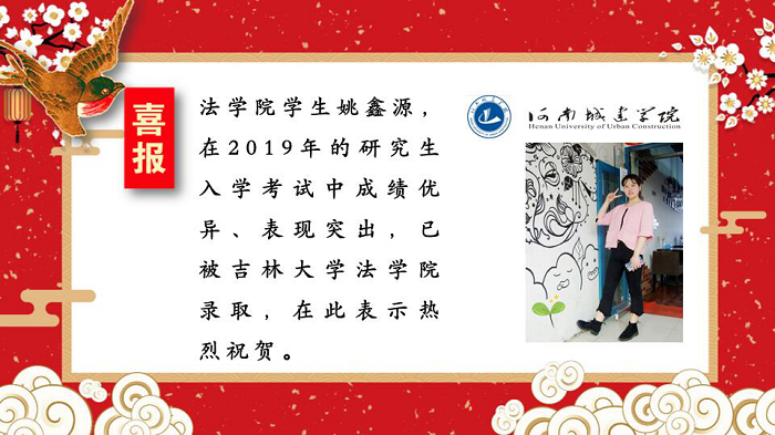 (通讯员:孟素燕 尚维潇)多年来英国上市公司365一直坚持推进学风建设,积极鼓励考研,营造良好的学习氛围。近期,英国上市公司3652019届考研学子喜报频传,录取人数再创新高。据悉,姚鑫源同学已被吉林大学录取,在此表示热烈祝贺。