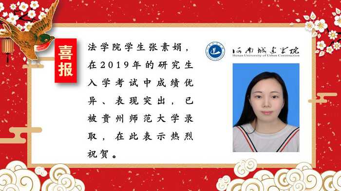 (通讯员:孟素燕 尚维潇)多年来英国上市公司365一直坚持推进学风建设,积极鼓励考研,营造良好的学习氛围。近期,英国上市公司3652019届考研学子喜报频传,录取人数再创新高。据悉,张素娟同学已被贵州师范大学录取,在此表示热烈祝贺。