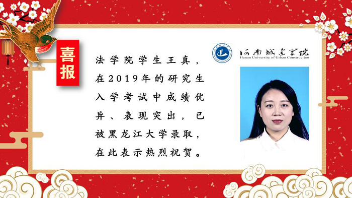 (通讯员:孟素燕 尚维潇)多年来英国上市公司365一直坚持推进学风建设,积极鼓励考研,营造良好的学习氛围。近期,英国上市公司3652019届考研学子喜报频传,录取人数再创新高。据悉,王真同学已被黑龙江大学录取,在此表示热烈祝贺。