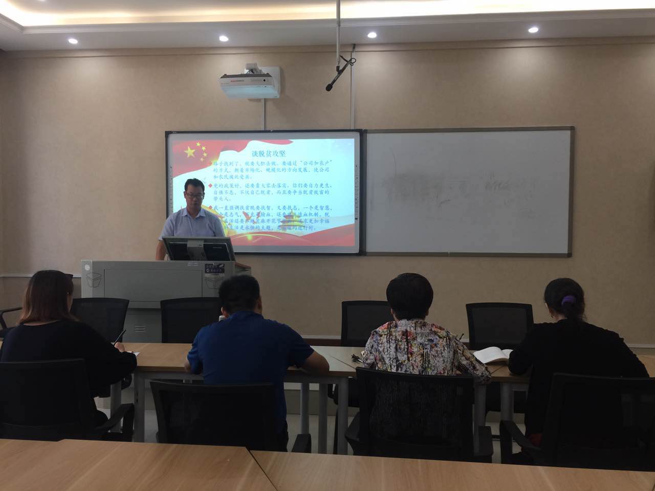尹振羽带领大家从六个方面集中学习传达习近平总书记视察河南重要讲话精神:习近平谈革命先烈;习近平谈乡村振兴;习近平谈脱贫攻坚;习近平谈制造业发展;习近平谈环境治理;习近平谈主题教育。