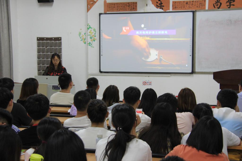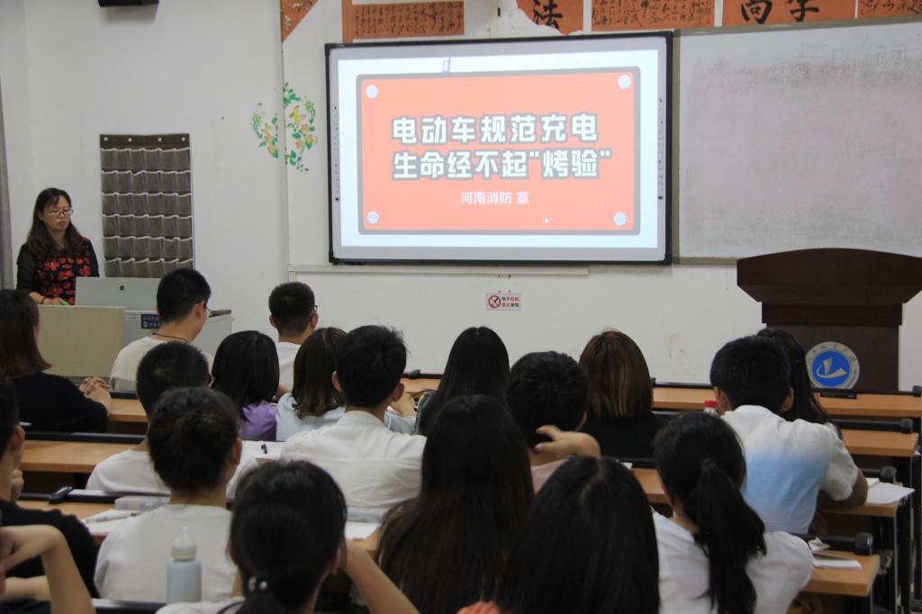 尹振羽向师生们讲解了消防安全的重要性及有关消防安全的理论知识,并具体介绍了如何做到保障消防安全的相关措施及重要细节,尹书记的讲话让同学们了解了许多的消防安全知识,现场掌声接连不断。紧接着,尹书记带领在座师生观看了河南省教育厅消防安全微视频,让在座师生们更为直观地了解消防安全。其中,尹书记多次围绕消防安全主题提醒各位师生在生活中应时刻注意消防安全,并结合微视频,着重讲解了家庭消防安全,以及防火逃生的技巧和方法,对在座师生起到了鲜明的警示作用。