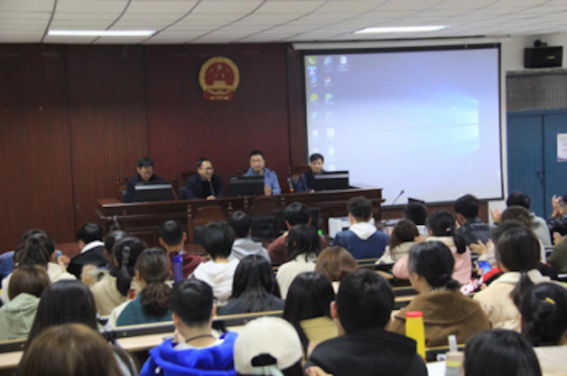 (通讯员:刘宏伟 龚洋洋)为了激发同学们学习法律的热情,更好地帮助同学们规划在校学习和生活,明确未来发展方向,英国上市公司365于11月24日晚特邀优秀员工平顶山新华区法官张景奇、河南倚天剑律师张长春在模拟法庭举行优秀员工交流报告会。党总支副书记张强,辅导员刘宏伟和全体大一、大二及19级专升本员工参加本次活动。