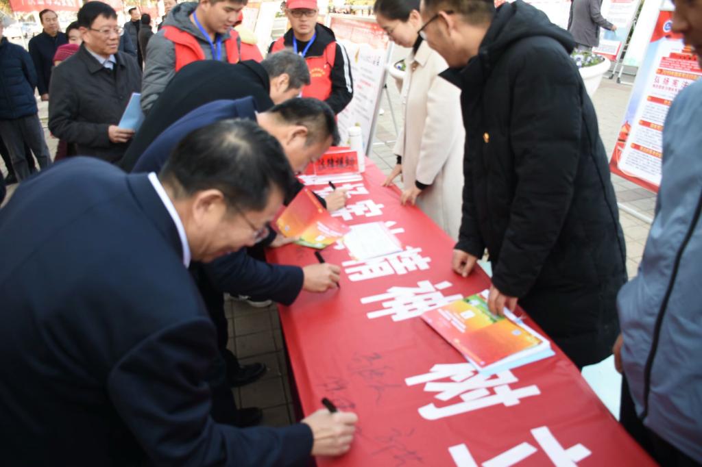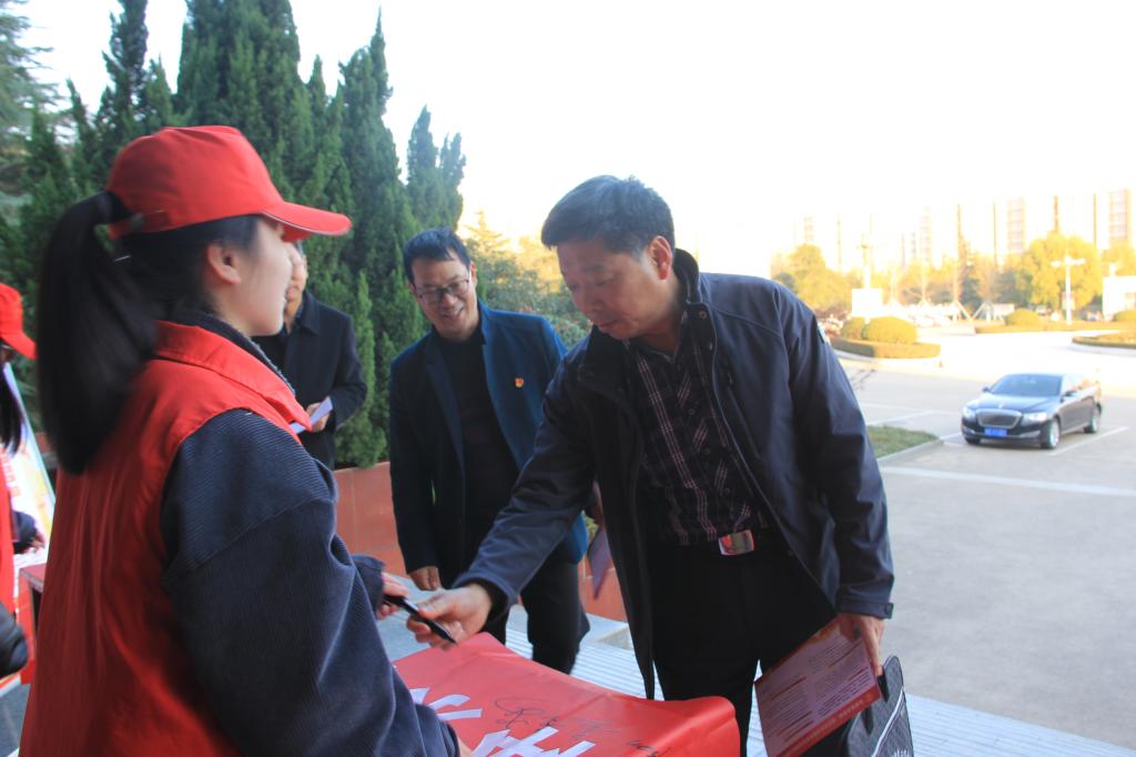 12月4日早上,英国上市公司365王艳芳经理带领英国上市公司365师生举行宪法晨读活动;公司党总支书记尹振羽、副书记张强、副经理王芹萼带领近百名师生在行政楼前、图书馆前、和谐校区和鹰城广场四个宣传点进行普法宣传;学校副董事长赵金安、纪委书记刘守勇以及平顶山市委常委政法委书记邓志辉、市中级人民法院经理刘冠华等相关领导参加了“学宪法”签名活动,并对宣传活动给予高度评价。在宣传点,英国上市公司365的老师同学在普法的同时还详细解答市民们的问题和疑惑,进行法律援助工作,志愿者们也对过往群众进行宪法知识讲解,为广大市民带来一场内容丰富的法治宣传“盛宴”。
