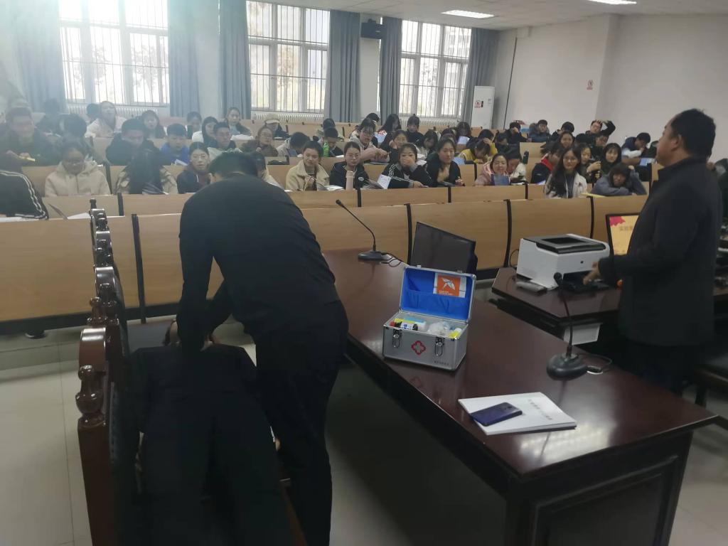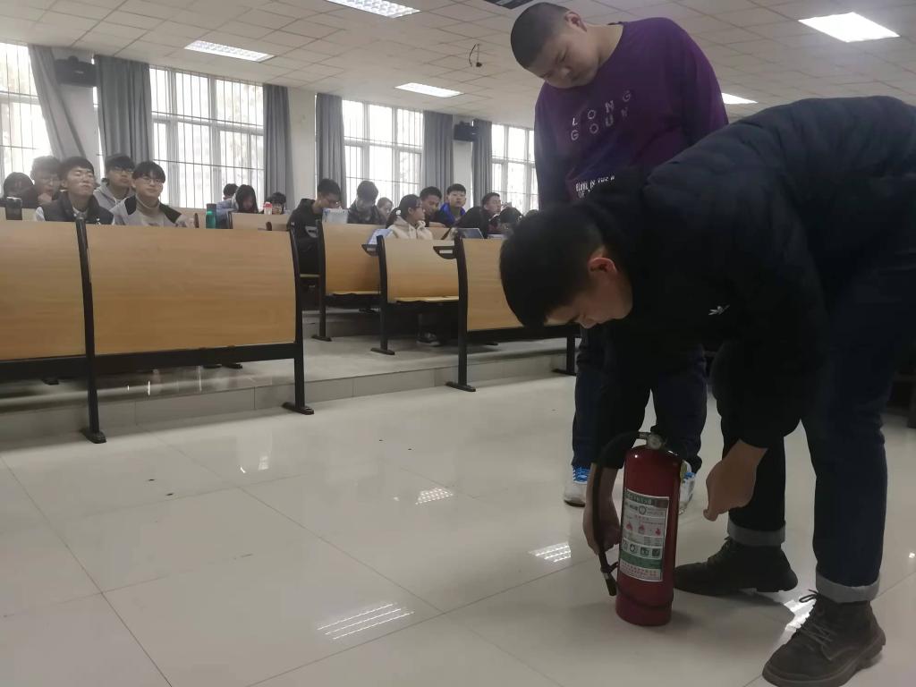 王永军带领师生学习了实验室管理规定和实验室安全管理规定;实验室危险源分布;实验室事故预防及突发事件的人员疏散和基本救助常识。培训后,还进行了灭火器的使用和紧急疏散的现场演练。