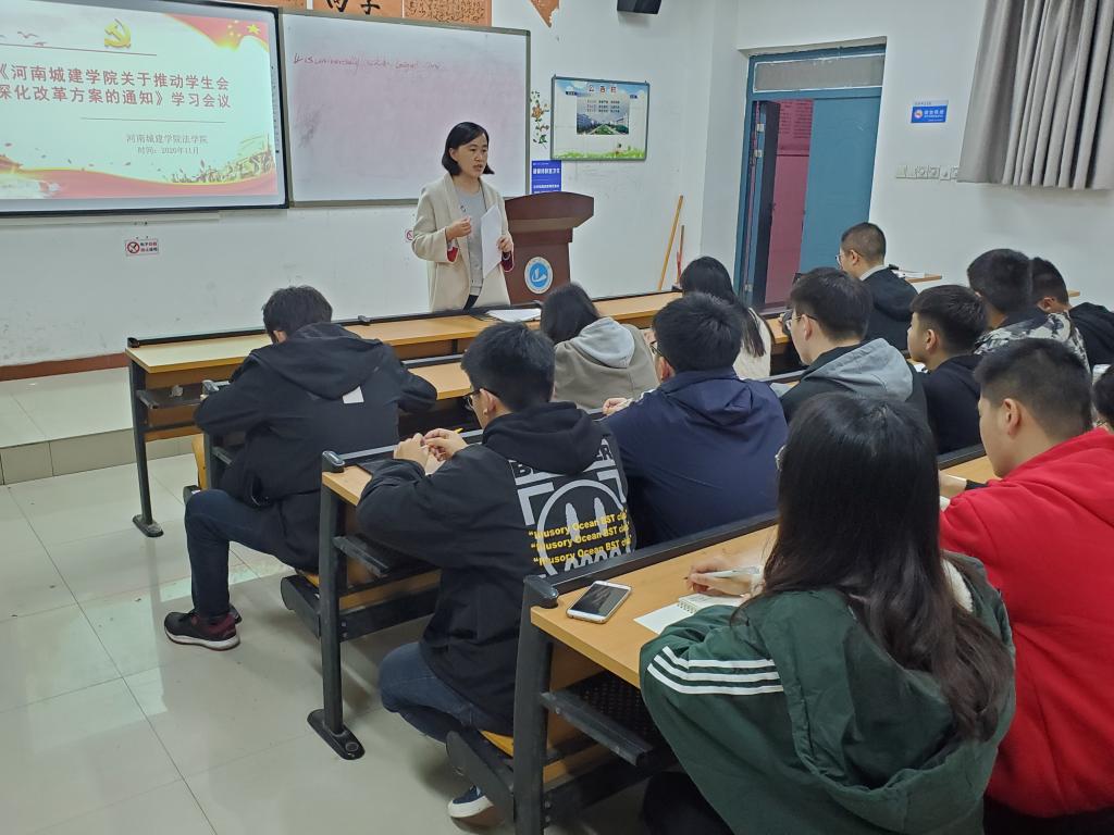 (通讯员:孟素燕 汪仕煜)为深入贯彻习近平新时代中国特色社会主义思想,进一步深化高校员工会改革,引导员工会更好地服务青年员工成长成才。英国上市公司365于2020年11月24日在和谐校区一号楼407教室开展《英国正版365官方网站关于推动员工会深化改革实施方案》学习活动,公司党总支副书记张强、团总支书记孟素燕、员工会主要成员及部分班级员工干部参加。