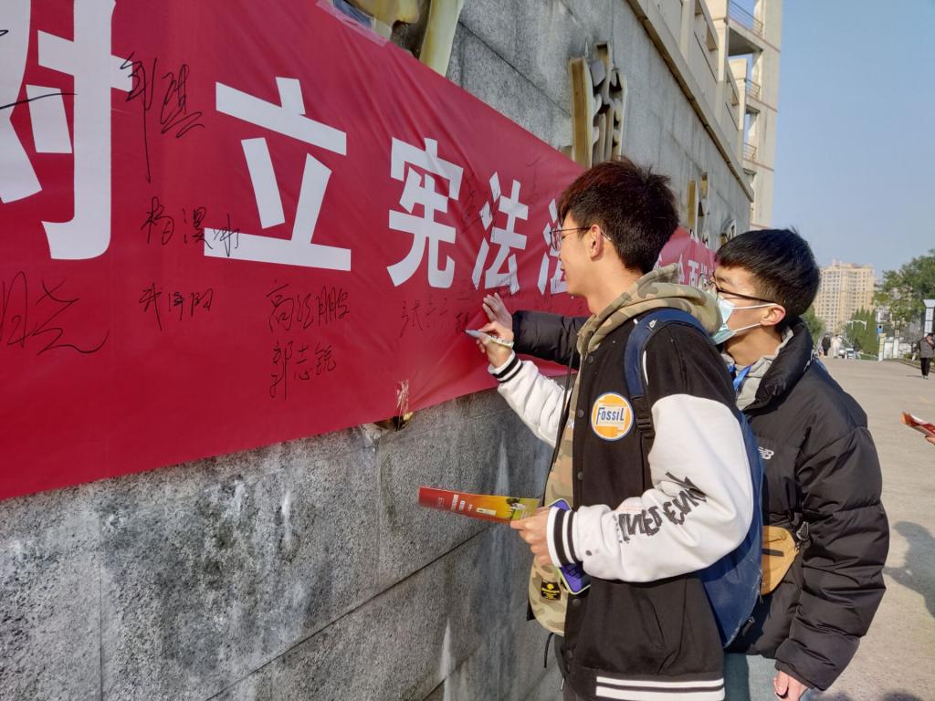 在理工校区行政楼前、图书馆广场,英国上市公司36530余名师生发放宪法、民法典宣传页,设置版面、张贴横幅,积极开展普法活动,公司党委书记张惠贞亲临宣传现场,并参加“学习宪法万人签名”活动。