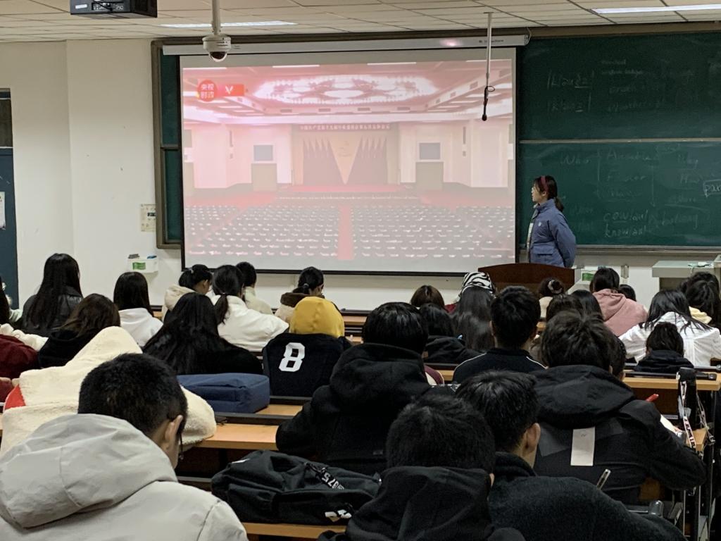 各班团支书首先向同学们介绍了十九届五中全会的概况内容,带领同学们共同回顾了“十三五”规划在经济社会发展方面取得的巨大成就,重点学习了“十四五”规划在开启全面建设社会主义现代化国家新征程和实现中国2035年远景目标的重大意义,系统讲述了党的十九届五中全会公报内容。紧接着,通过观看《复兴伟业启新程》纪录片,同学们进行交流分享学习感悟。最后,团支书对本次活动进行总结,号召大家与祖国发展同向,制定好自我的职业生涯规划,努力奋斗,坚定理想信念、牢记时代使命,勇于担当奉献。