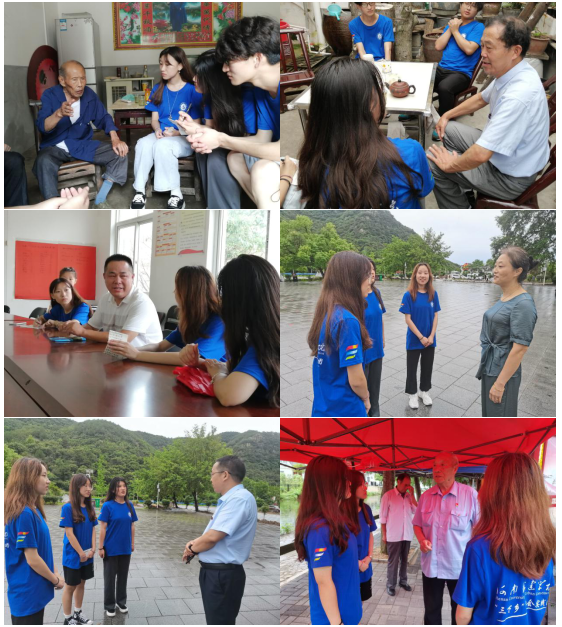 实践团成员们在何家冲和新县,对当地居民、游客、党员和干部分别进行走访和调查。从他们口中去了解当地过去一些更加详细的历史,询问他们对党的看法。在交流中,通过群众的口中,了解当地的发展状况和文化精神面貌,同时,实践团成员们也为当地群众宣传党的历史和红色文化,用实践行动去做好红色文化代言人的工作。