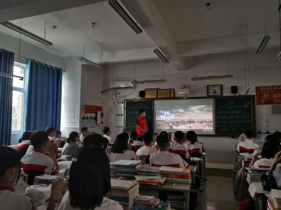 图为实践团成员为同学们播放相关视频
