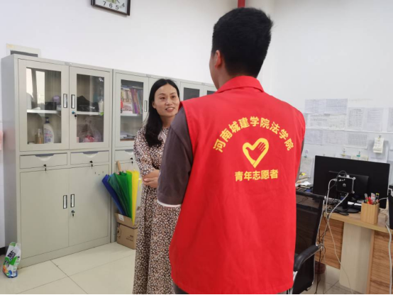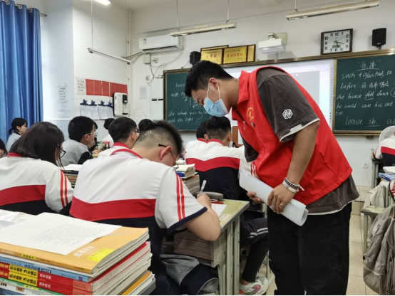 图为实践团成员在与班主任沟通了解高三同学们的学习情况